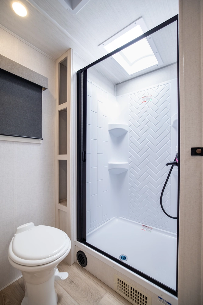 • Upgraded Slow-Close Shower Door