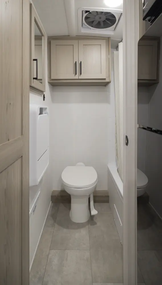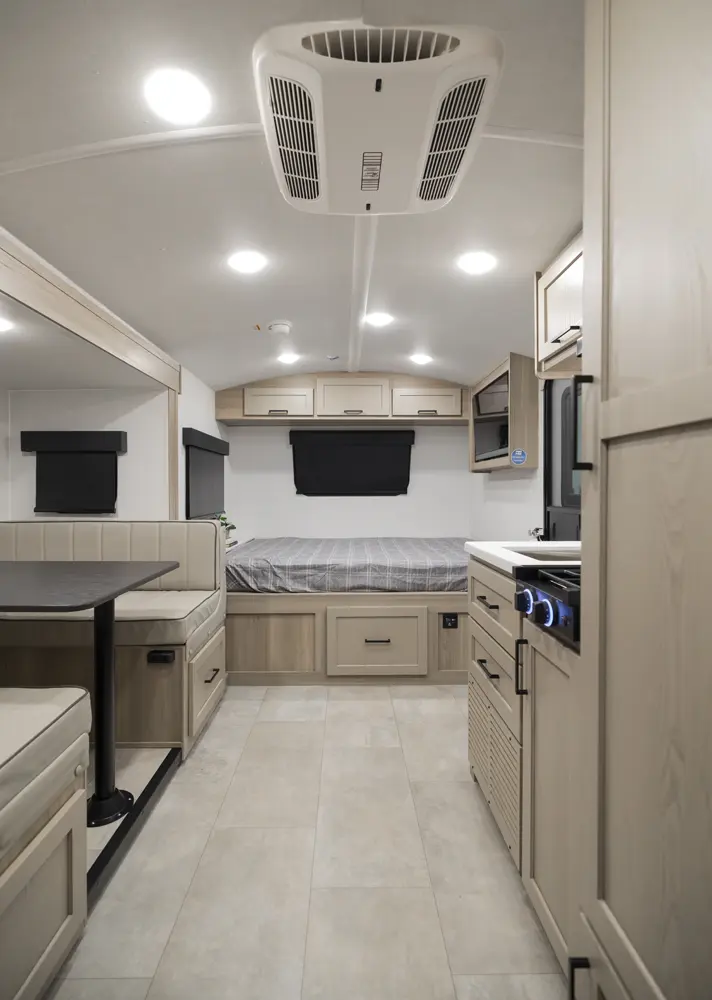 The Geo Pro 20BH is a lightweight bunkhouse designed for adventure. At just over 21 feet long, It’s easy to tow while still offering sleeping space for the whole family. It features rear bunks and a versatile dinette. The functional kitchen, modern interior, and standard off-grid features like a roof-mounted 200-Watt solar panel paired with an 1800-Watt inverter makes the 20BH a perfect option for campers you want comfort capability and freedom to explore.