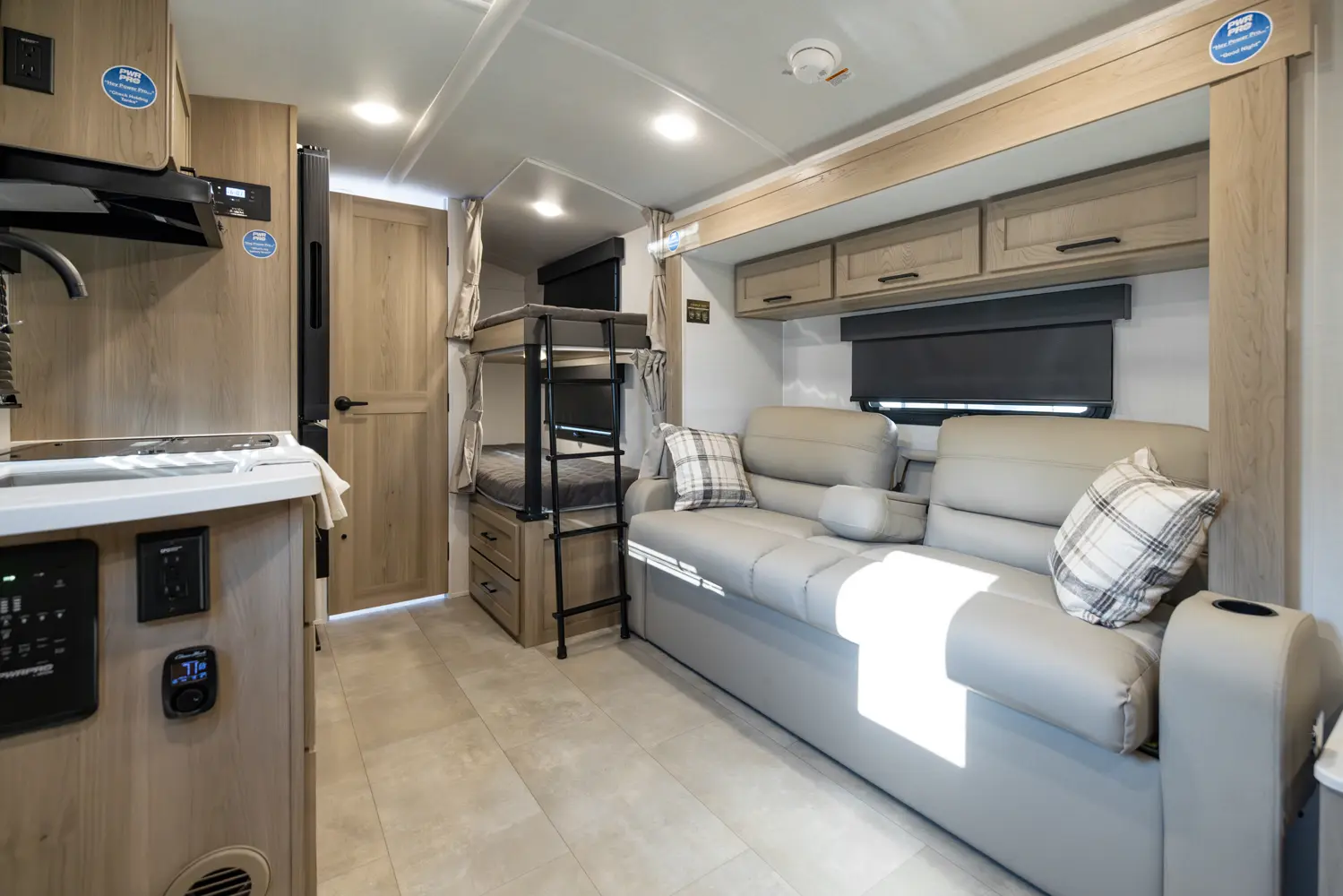 The Rockwood Geo Pro 20BHT is a compact bunkhouse packed with smart features! It’s our second Geo Pro with a dual axle setup, giving you improved towing stability and durability on the road. And just over 21 feet long and around 4,000 lbs. It’s easy to tow while still offering comfortable sleeping space, a functional kitchen, and modern off grid features!
