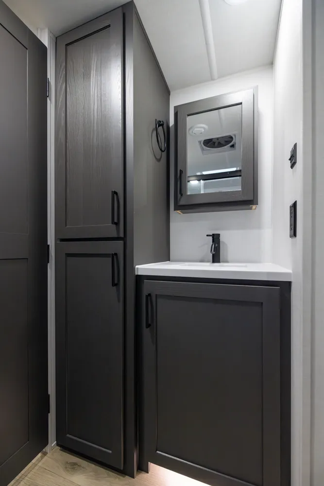 • Platinum Package: Auto Leveling, Frameless Windows, 1800W Inverter, MORryde Strut Assist Entry Step, Dual 30 LP Tanks